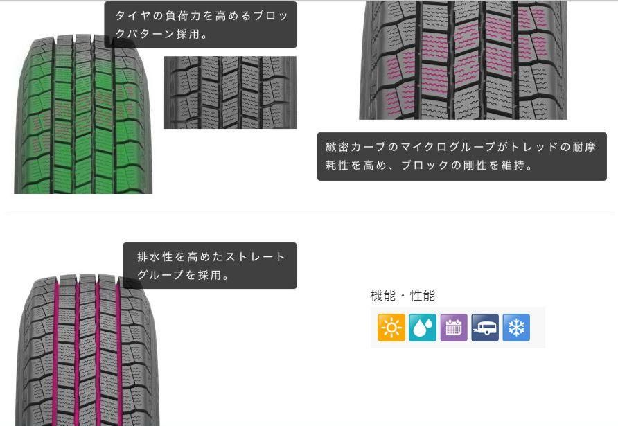 日本の雪道とアイスバーンで安定した性能を発揮する非対称デザインと新コンパウンドを採用したスタッドレスタイヤ。