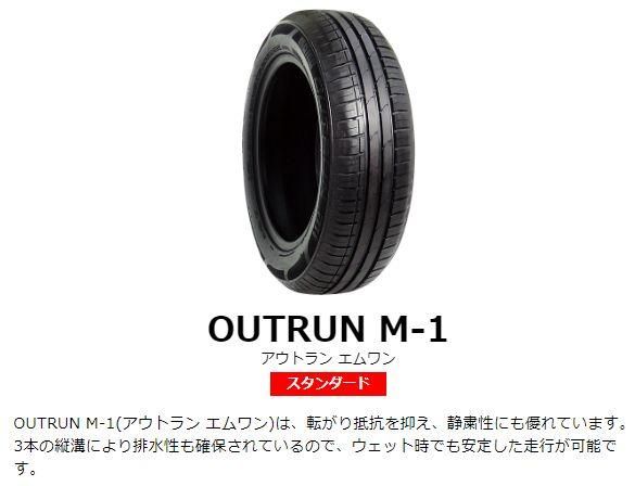 ■OUTRUN M-1(アウトラン エムワン)は、転がり抵抗を抑え、静粛性にも優れています。3本の縦溝により排水性も確保されているので、ウェット時でも安定した走行が可能です。